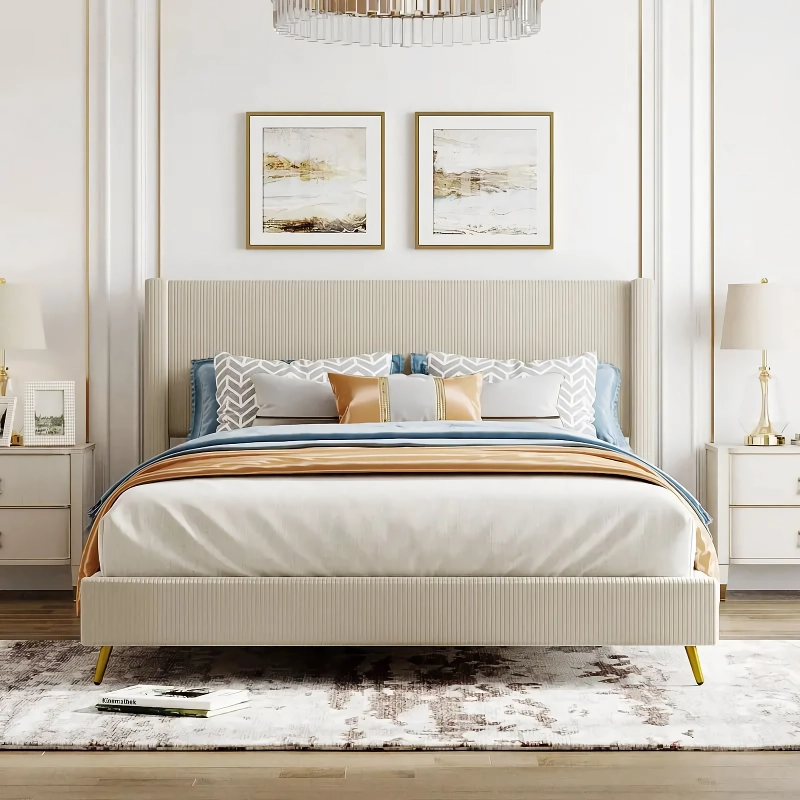I'm in love with my new bed! The beige color is absolutely beautiful and complements my bedroom decor perfectly. The corduroy material adds a luxurious touch that I didn't know I needed. It was easy to assemble, despite a few holes not aligning perfectly, but that was a minor hiccup in what was otherwise a seamless experience. Highly recommend!