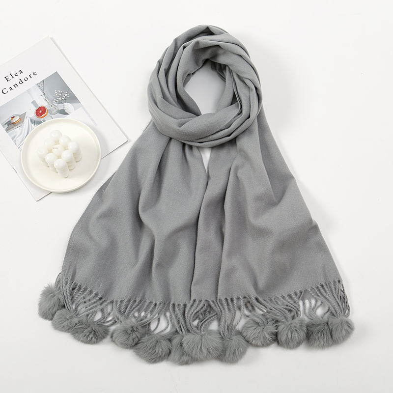 Experience the perfect blend of style, comfort, and luxury with our Elegant Cashmere Scarf featuring Rabbit Fur Pom Poms. This oversized winter wrap is designed to keep you warm while adding a touch of sophistication to your outfit. Whether you’re heading out for a winter stroll or cozying up at home, this versatile scarf is your go-to accessory for any occasion. With a solid pattern and a plush feel, it’s more than just a scarf—it’s a statement of elegance.