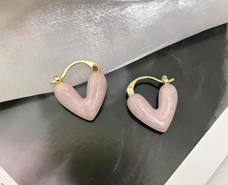 Our earrings are not just another piece of jewelry; they are a symbol of luxury and fashion. The intricate pink oil dropping detail adds a unique touch, setting these earrings apart from ordinary jewelry. Their heart shape is not only trendy but also adds a romantic flair to any outfit. With their light luxury design, they are a must-have for any fashion-conscious woman.