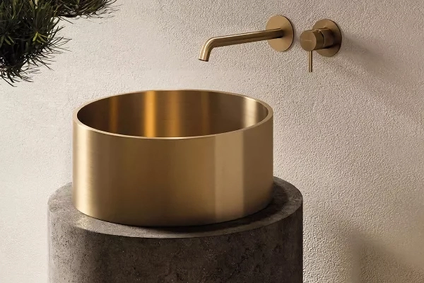 The gold finish and round design of this basin add a touch of timeless elegance to my decor, blending functionality with artistry in my bathroom space.