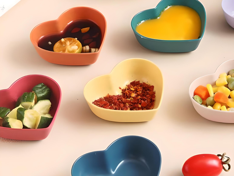 What sets our Heart-Shaped Seasoning Dish apart is its combination of functionality and aesthetics. Made from eco-friendly wheat straw plastic, it’s not only durable but also environmentally conscious. The heart shape adds a unique and playful touch, making it a delightful item in your kitchen or on your dining table. It’s more than just a dish; it’s a statement of style and sustainability.
