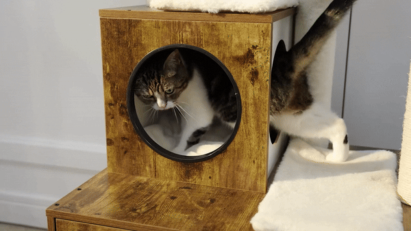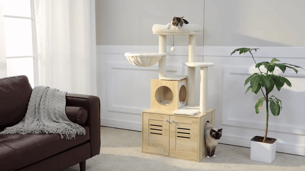 It's a cat tree with a bonus: a hidden spot for the litter box. Cats love lounging on it, and hiding the litter box is a game-changer. Big win for both me and the cats.